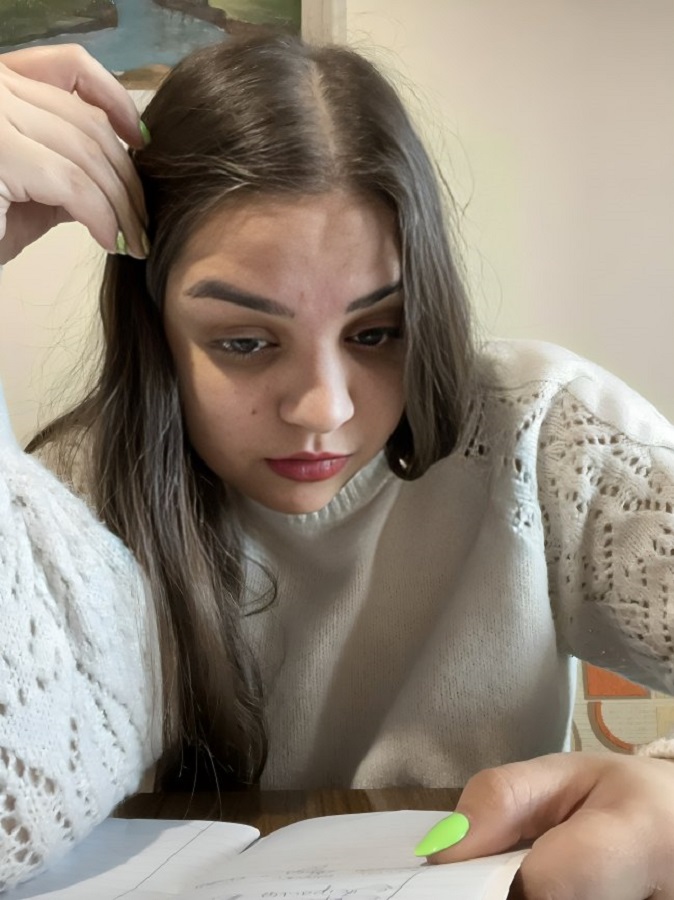 Vanja is spending her day preparing for an upcoming university exam. Dressed in a cozy white winter sweater, she sits at her desk surrounded by textbooks, notes, and a warm cup of tea. At first, the task feels almost impossible – too many pages, complicated concepts, and not enough time.