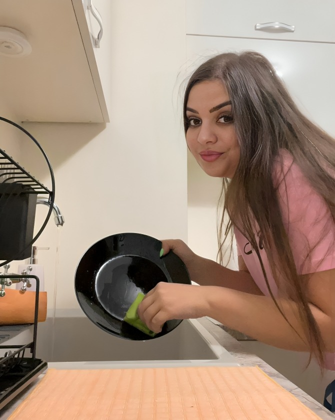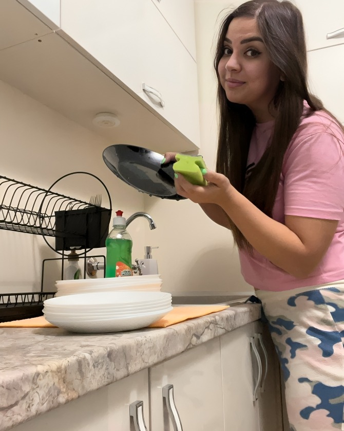 For Vanja, Sunday starts with one of those chores that always gets postponed – washing the dishes. The pile in the sink seems to stare at her challengingly as she sighs deeply, realizing there’s no way to avoid the task. Dressed in a pink short-sleeved T-shirt, Vanja reluctantly gets to work. The water is warm, the soap suds up nicely, but she can’t hide the look of boredom on her face. “Can’t they just clean themselves?” she thinks as she scrubs away at stubborn stains.